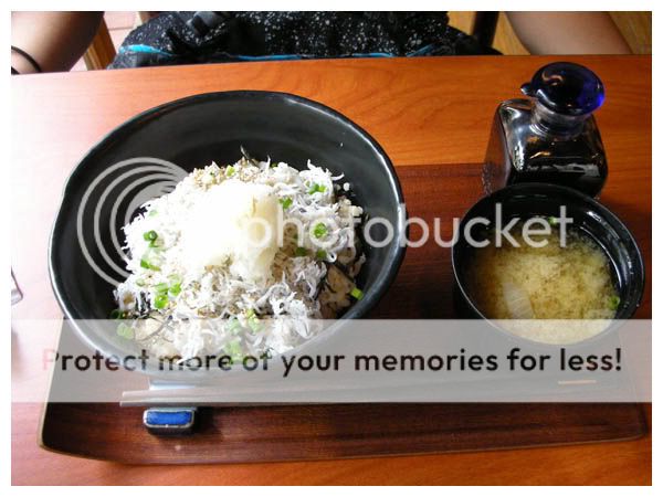 魩仔魚+蘿蔔泥下面是雜糧飯,還有一碗味增湯ˊ~ˋ