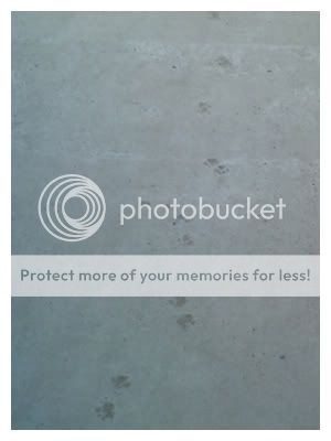 地上的水泥應該是新舖的,一排長長的貓掌印真有趣XD